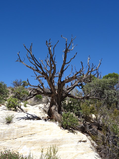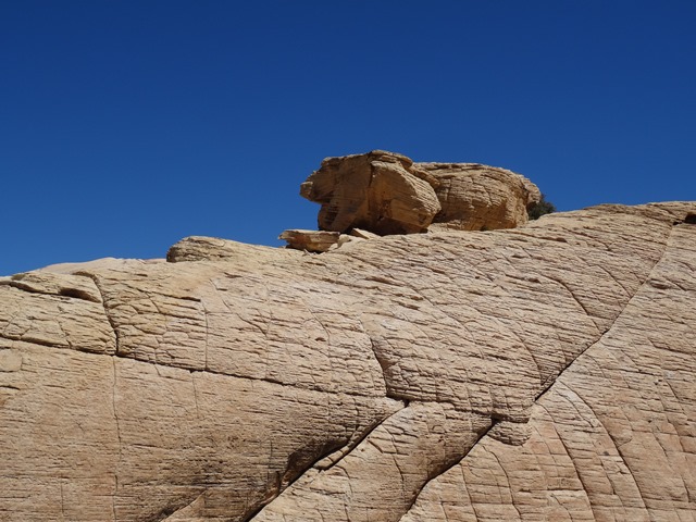 Die schönsten Felsen im Red Rock Canyon sind eigentlich die White Rocks. Dort habe ich fast so etwas wie eine Wanderung gemacht, zumindest bin ich fast eine Stunde lang durch die weißen Felsen spaziert und habe die angenehme Septemberhitze genossen. Einige der trockenen Bäume waren wirklich fotogen und so etwas wie ein ausgetrocknetes Bachbett, das ich wohl mit dem angekündigten Wanderweg verwechselt habe, hat mich etwas tiefer in die schöne Landschaft hinein geführt. Hier waren auch keinerlei Insekten unterwegs.