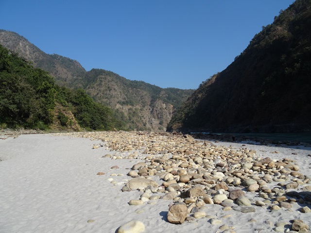Rishikesh liegt am Ganges, und zwar in einer Gegend, in der der heilige Fluss noch ziemlich sauber ist. Hier wäre sogar ich bereit gewesen, mich in das heilige Wasser hinein zu begeben. Leider war es so unglaublich kalt, dass ich die Gelegenheit zur Vergebung aller Sünden durch das fünfmalige Untertauchen in den heiligen Fluten, ausschlage. Für das Eintauchen eines einzigen Fußes werden nur ganz winzige Sünden vergeben – wenn überhaupt.