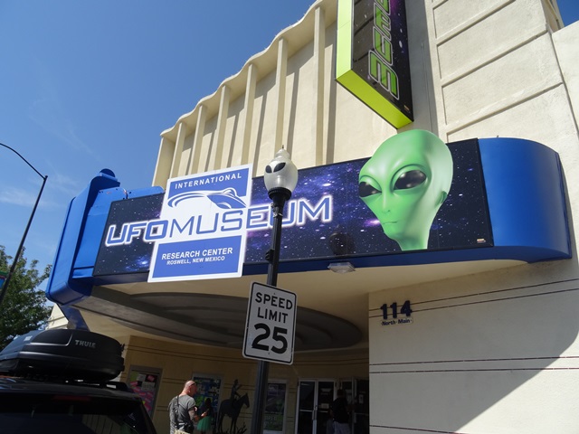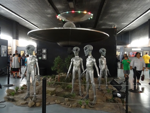Trotzdem lebt noch immer ein beträchtlicher Prozentsatz der Bewohner von Roswell vom UFO-Tourismus. Die Hauptattraktion des Ortes ist das Ufo-Museum, offiziell als „UFO Museum and Research Center“ bezeichnet. Dieser Name verleiht dem Museum einen wissenschaftlicheren Touch und tatsächlich schafft es das kleine Museum, sowohl die UFO-Fanatiker als auch die Skeptiker vollkommen in seinen Bann zu ziehen. Aus den zahlreichen Dokumenten, Bildern und Artefakten ist die Geschichte der Ereignisse 1947 gut nachvollziehbar und jedem bleibt es selbst überlassen, welchen Augenzeugen er Glauben schenken möchte. Der Rancher, der das vermeintliche UFO gefunden hat, wurde offenbar von der amerikanischen Armee aufgesucht, die ihm die Originalteile der havarierten Untertasse abgenommen und Fotos von ihm mit einer Fälschung gemacht haben. Diese Fotos gingen um die Welt. Man kann in dem Museum eidesstattliche Erklärungen von Krankenschwestern lesen, die zu dieser Zeit auf der Militärbasis bei Roswell Dienst hatten und schwören, die Leichen der verunglückten Aliens gesehen zu haben.