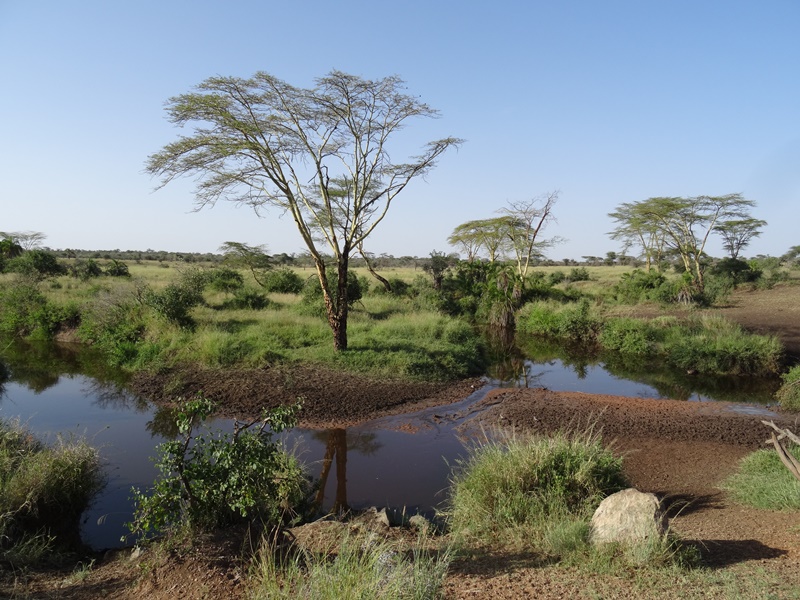 Alle Mühe, auch die Entbehrungen des Campingplatzes mitten im Nationalpark, sind es absolut wert! Die Serengeti ist wohl einer der zauberhaftesten Orte dieser Erde. Serengeti bedeutet sowie wie endlose Ebene. Und das passt gut. An manchen Stellen sieht man tatsächlich bis zum Horizont ringsum den Jeep nur gelbliches Gras mit ganz vereinzelten Bäumen. Andere Gegenden sind grüner, haben Wasserläufe oder Wasserlöcher und kleine Akazienhaine. Überall tummeln sich verschiedene Tiere.