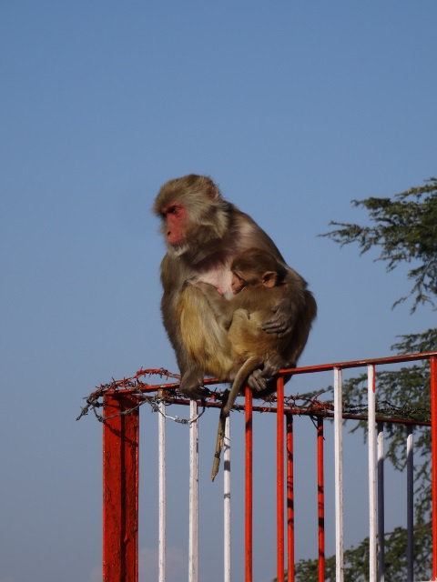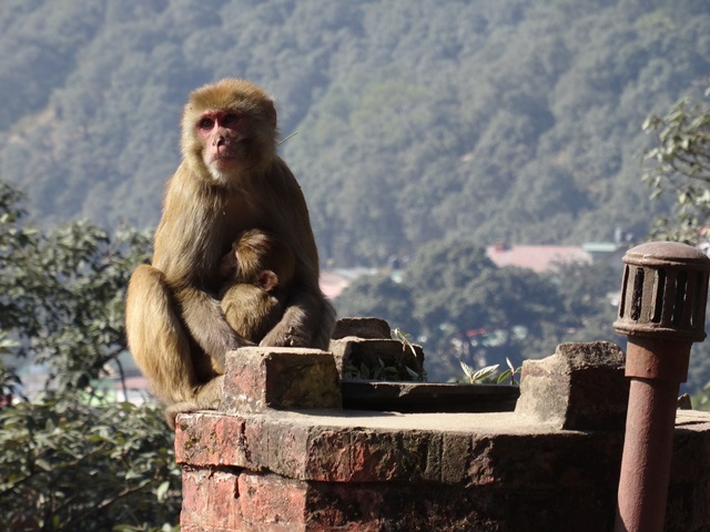 In der Oberstadt steht eine katholische Kirche an einem ziemlich großen Platz. Von hier aus führt ein Weg den Berg hinauf bis zum Jakhoo Tempel, dem Affentempel. Er ist Hanuman, dem Affengott geweiht und die Affen lieben diesen Ort. Sie tollen überall herum und führen sich auf wie die Herren des Tempels, was sie im Grunde auch sind. Als Tourist muss man unbedingt wissen, dass man auf keinen Fall eine Brille tragen sollte. Die Affen sind nämlich darauf spezialisiert allen Besuchern ihre Brillen wegzunehmen und dann bis aufs Bitterste zu verhandeln: Gebt alles Essbare heraus, oder ihr sehr eure Brille nie wieder! Es funktioniert!