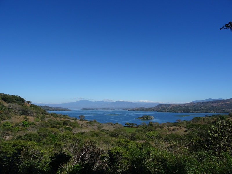 Wenn man ein wenig aus der Stadt hinaus fährt kann man einen schönen Blick auf den riesigen Stausee werfen, den Suchitlán See. Hier wurde der Lempa Fluss gestaut. 40.000 Menschen mussten umgesiedelt werden, aber der See liefert mit seinen Wasserkraftwerken heute 40% der Energie des Landes. Die Landschaft sieht friedlich und grün aus rund um den länglichen und von vielen Inseln durchsetzten See. Ich werde auf eine Insel aufmerksam gemacht, auf der sich ein weißes Flugzeug erkennen lässt. Ich erfahre, dass dieses Flugzeug ein Geschenk der US Air Force an die Air Force von El Salvador war. Leider erlitt es eine ziemlich schlimme Bruchlandung auf dem See. Einer der hiesigen Fischer schaffte es, einen der vier Insassen aus den Fluten zu retten. Er wurde als Held gefeiert. Die Air Force fragte ihn, was er sich als Belohnung wünsche. Er antwortete: „Kriege ich Bier?“ Man brachte ihm Bier und schmiss eine riesige Party für ihn. Auf der Party wurde er dann wieder gefragt, was er sich denn wünsche – jetzt mal ehrlich. Leider war er zu dem Zeitpunkt schon etwas betrunken und so wünschte er sich, das Flugzeug behalten zu dürfen. So kam er in den Besitz der Maschine, die heute flugunfähig auf seiner Insel steht.