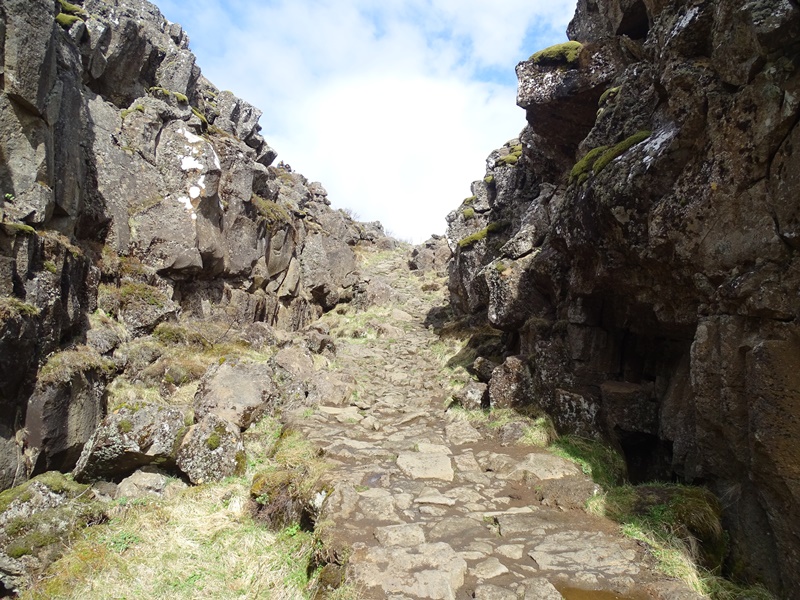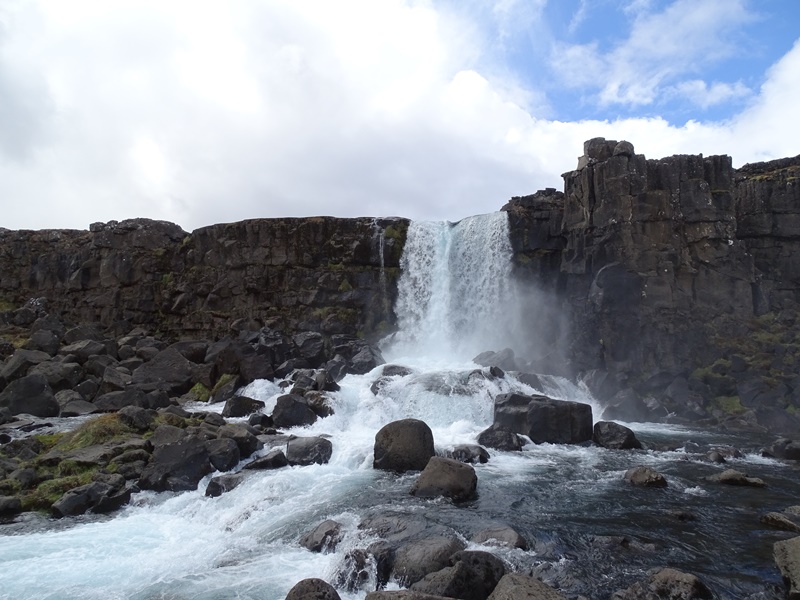 Thingvellir ist ein ganz besonderer Ort in Island und zwar aus verschiedenen Gründen. Zum einen stoßen am Thingvellir die amerikanische und die eurasische Kontinentalplatte aufeinander. Es hat sich die Sifra Spalte gebildet und hier kann man, wenn man ausreichend Geduld mitbringt, beobachten, wie die Platten sich jedes Jahr um etwa sieben Millimeter weiter voneinander entfernen. Das erklärt zwar nur zum Teil die immer teurer werdenden Interkontinentalflüge, aber es ist immerhin mal ein Hinweis.