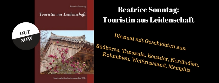 Touristin aus Leidenschaft ist Ende 2017 erschienen und handelt einmal mehr von meinen Weltreisen. Diesmal sind mit dabei: Südkorea mit seiner faszinierenden Mischung aus Uraltem und Hochmodernem, Tansania mit seiner lebendigen und beeindruckenden Tierwelt, Kolumbien mit der ausnehmend schweißtreibenden Ciudad Perdida, Ecuador, wo der Mittelpunkt der Welt inmitten von Vulkanen liegt, Nordindien, wo die Inder Lärmwettbewerbe gewinnen und viele Religionen ihren Ursprung haben und Weißrussland, das wohl sauberste Land Europas mit einem wirklich merkwürdigen Diktator.