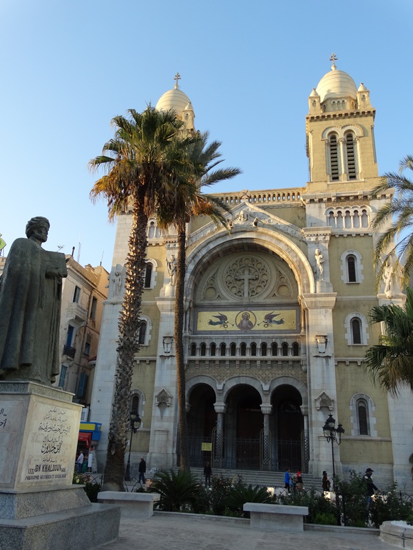 Die Araber haben ihre Medina, also ihre Altstadt von Tunis auf dem Terrain gebaut, das aus festem stabilem Land bestand. Die Altstadt platzte natürlich bald aus allen Nähten und schließlich haben die Franzose ihre Neustadt mitten auf den Sumpf gebaut, der zwischen Medina und Salzsee vor sich hin blubberte. Mit den damals modernsten Methoden haben sie alles trocken gelegt. Das Projekt war ein Erfolg. Selbst die Kathedrale aus dem 17. Jahrhundert steht auf ehemals sumpfigem Gelände.