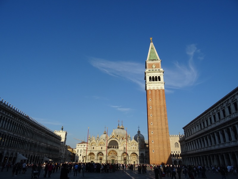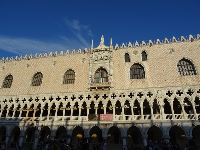 Zunächst muss man sich natürlich die Hauptsehenswürdigkeiten ansehen: den Markusplatz mit der richtig eindrucksvollen Markuskirche. Man kann entweder drei Euro zahlen oder in einer langen Schlange stehen und dann kostenlos hinein gehen. Innen sind einige Tonnen Gold verarbeitet. Wer das Prachtstück sehen will, den supergoldenen Altar, der muss allerdings innen nochmal Schlange stehen und trotzdem was zahlen.