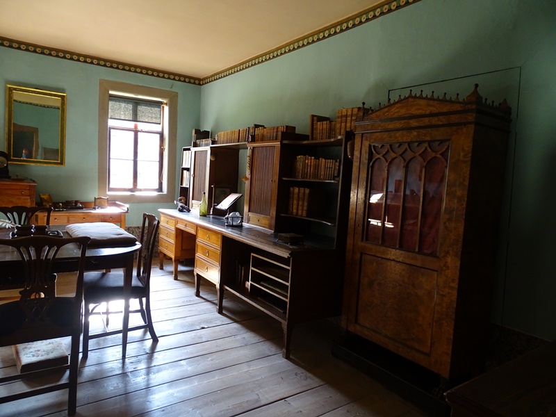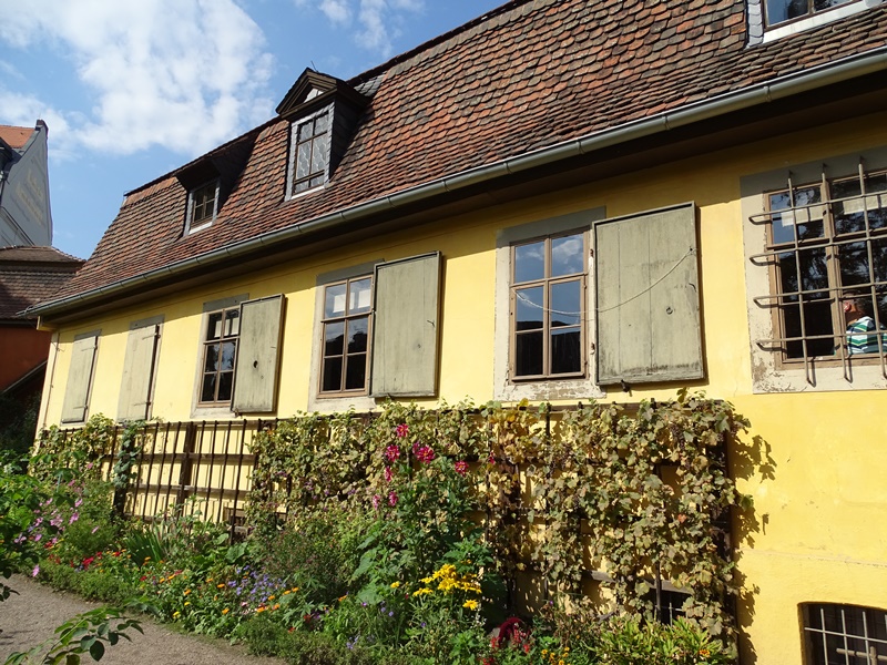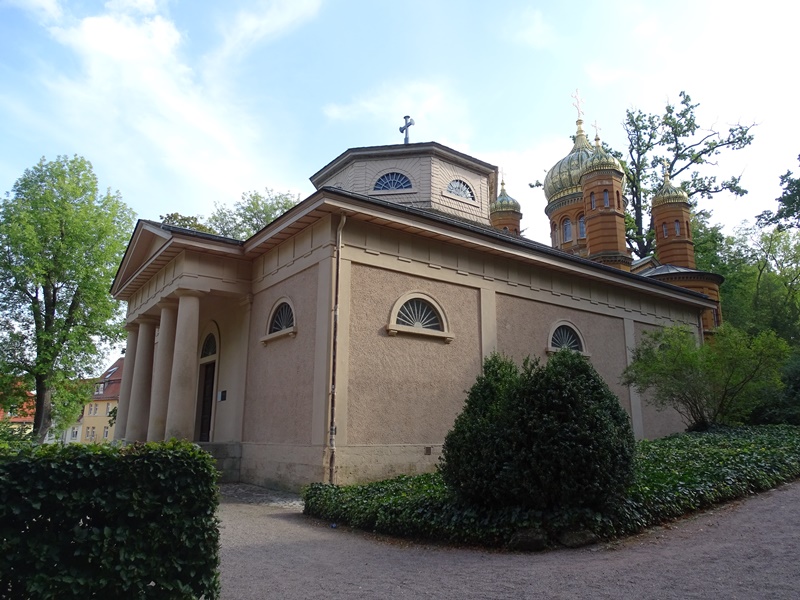 Schiller hat deutlich weniger Zeit in Weimar verbracht, aber auch er hat seine Spuren hinterlassen. Leider ist er in einer etwas kniffligen Lage gewesen, als er gestorben ist. Um ehrlich zu sein, war er pleite. Keiner weiß, warum weder sein Freund Goethe noch sein Freunde Karl August für eine elegante Beerdigung gezahlt haben, aber letzten Endes wurde Schiller in einem anonymen Armengrab verscharrt. Später begaben sich Wissenschaftler auf die Suche nach seinen Gebeinen. Als man glaubte, die richtigen Knochen gefunden zu haben, wurden sie schließlich in einer noblen Gruft beigesetzt. Dummerweise erfand dann irgendein Spielverderber die DNA-Analyse und es stellte sich heraus, dass es die falschen Knochen waren. Wie auch immer. Die Gruft auf dem Friedhof von Weimar ist hübsch, mit bunten Zwiebeltürmchen.