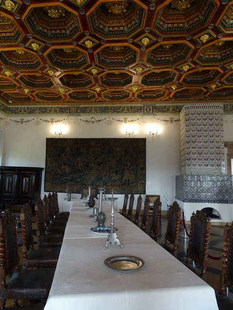Im Schloss Mir, das ebenfalls der Familie Razawilli gehört hat, muss ich mit einem Audioguide Vorlieb nehmen, der mir aber kaum etwas Neues erzählen kann. Das hat Vitali in Neswish schon alles ausführlich getan. Trotzdem ist auch die Anlage von Mir einen Besuch wert. Mir wirkt eher wie eine Festung als wie ein Schloss, auch wenn es im Innern einige prunkvolle Säle gibt. Die Wehrtürme sind deutlicher ausgeprägt und weniger grazil. Die Mauern sind dicker insgesamt passt hier der Begriff Festung etwas besser.