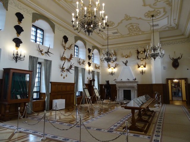 In Nesvish liegt das Schloss malerisch in einem riesigen künstlichen See, der es wie ein Burggraben umgibt. Über einen langen Weg gelangt man zu einer Brücke, die den zweiten und eigentlichen Burggraben überquert. Der Innenhof ist eindrucksvoll, aber noch bunter und schöner wird es im Innern des Schlosses. Ich fühle mich nach Versailles oder Puschkin versetzt und staune über teures Porzellan, Wandbehänge, düstere Portraitgemälde, Spiegelsäle, Jagdtrophäen, eine Waffensammlung, eine Kapelle und wuchtige Kachelöfen. Ein freundlicher älterer Herr führt mich drei (statt der vorgesehenen einen) Stunden lang durch das Gemäuer und erzählt mir wahrscheinlich nur einen Bruchteil dessen, was er über die Familie Razawilli weiß. Er scheint ein wirklicher Fan besagten Adelsgeschlechts zu sein und weiß Geschichten zu fast jedem Gegenstand in der Sammlung zu erzählen.