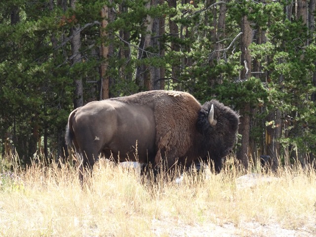 Die hervorragende Organisation gerät nur dann ins Stocken, wenn irgendwo ein Bison auf der Straße auftaucht. Das geschieht mehrmals am Tag an verschiedenen Stellen. Die Besucher geraten dann ganz aus dem Häuschen, machen den Warnblinker an und bleiben einfach stehen. Mit gezückten Kameras starren sie die mächtigen Tiere an, hin und her gerissen zwischen Ehrfurcht und dem Impuls die riesigen Fellknäule zu umarmen. Die Warnungen der Parkranger, man solle sich auf keinen Fall näher als 91 Meter an die Tiere heranwagen, hält die meisten davon ab, sich bis auf weniger als einen Meter zu nähern.