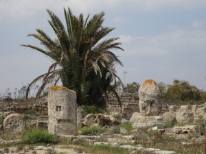 Die letzte Ruine, die ich sehen will liegt in Salamis, einer Stadt, die es nicht mehr gibt und die nichts mit Hartwurst zu tun hat. Salamis ist die Ruinenstadt außerhalb von Famagusta und hier gibt es wirklich wunderware römische Amphitheater, Paläste, Mosaike, frühchristliche Basiliken und Säulengänge zu bestaunen. Der Monat Juni eignet sich bestens für eine Reise nach Zypern, weil dann die Wassermelonen reif und nicht teuer sind. Überall am Straßenrand verkaufen Menschen ihre Ernte aus dem Kofferraum oder auf kleinen Wägelchen. Richtig lecker sind auch Salate mit Johannesbrotsauce oder Tortellini à la Haloumi mit Käse (sehr sättigend).